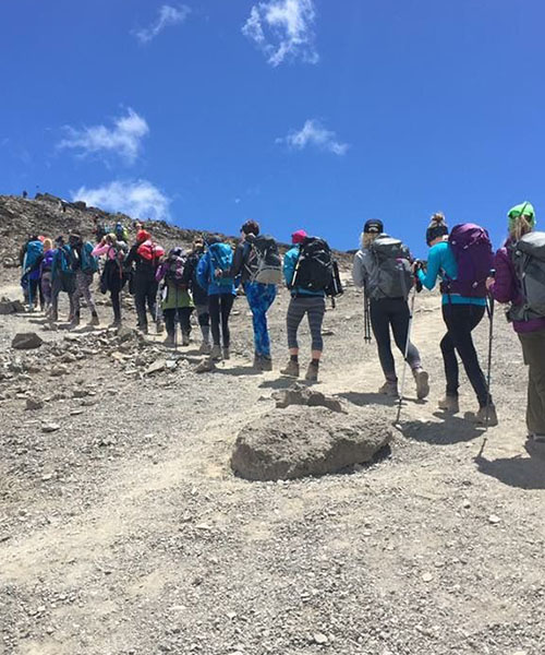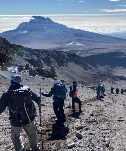 Your guide will wake you up around 23:30 for tea and biscuits. You will then begin your summit attempt. The trail is rocky up to Hans Meyer Cave (5150m). You continue your ascent to Gillman’s point (5681m). Reaching this section is an impressive achievement as the trail is steep, rocky, and at high altitudes. Gillman’s is located on the crater rim. From this point, you will usually experience a snow-covered trail until you reach the summit, Uhuru Peak (5895m). Reaching the summit of Mt. Kilimanjaro is a lifetime accomplishment! You will be able to spend a short time on the summit taking photographs and drinking tea before the descent to Barafu begins. The hike down to Kibo Hut takes about 3 hours.